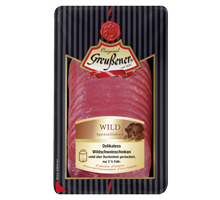 Greußener Roh- und Kochschinken garantieren einzigartige Geschmackserlebnisse. Schwein, Rind, Lamm, Wildschwein und Hirsch bilden hochwertigste Grundlagen für ausgesuchte Schinken-Spezialitäten. Saftiger Kochschinken und feinster Rohschinken - z.T. monatelang luftgetrocknet und mit Buchenholzrauch gereift - laden ein zum herzhaften Greußener-Genuss!Lachsfleisch Pfeffer-Zitrone, nur 2% Fett